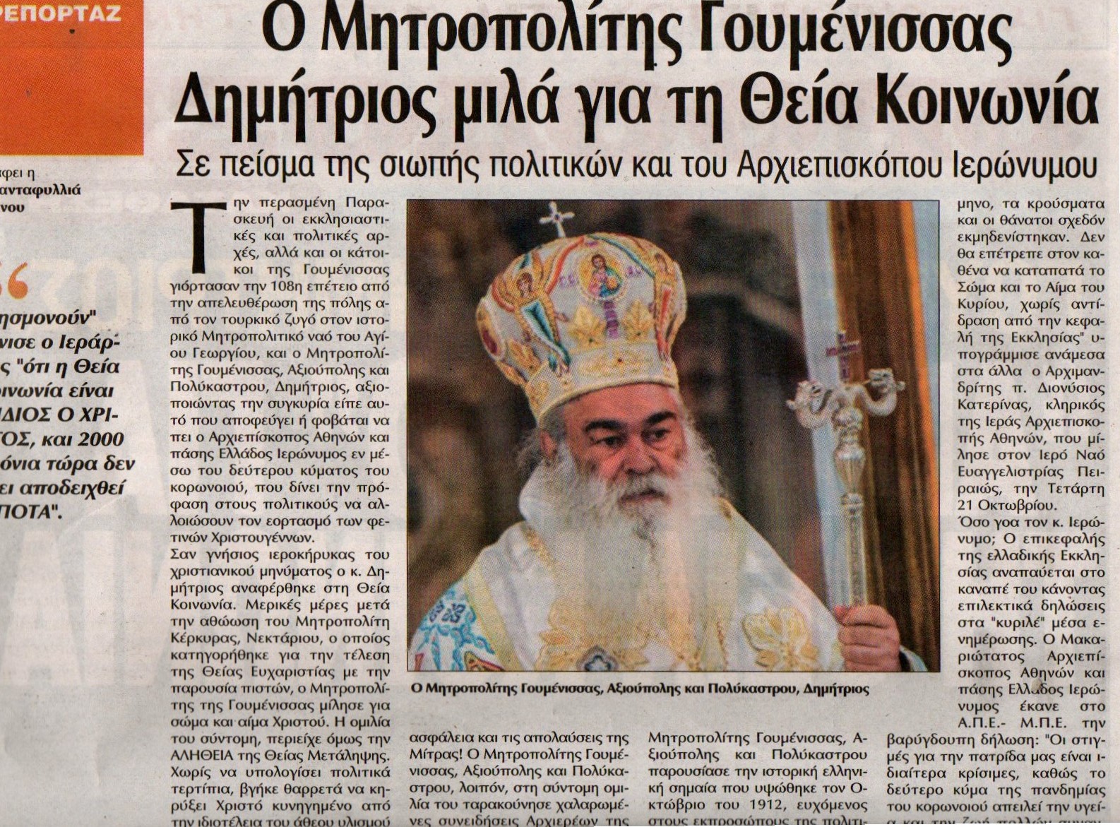 ________Στη συνέχεια σας παραθέτουμε μια ηρωϊκή ενέργεια του Σεβ. Μητροπολίτου Γουμενίσσης κ. ΔΗΜΗΤΡΙΟΥ, ο οποίος μάλιστα σήμερα εορτάζει τα σεπτά ονομαστήριά Του και προς τον Οποίον ευχόμεθα ΕΤΗ ΠΟΛΛΑ, ΑΓΙΑΣΤΙΚΑ, ΟΜΟΛΟ-ΓΙΑΚΑ, ΚΑΡΠΟΦΟΡΑ, ΕΥΑΡΕΣΤΑ ΠΡΟΣ ΤΟΝ ΚΥΡΙΟΝ!